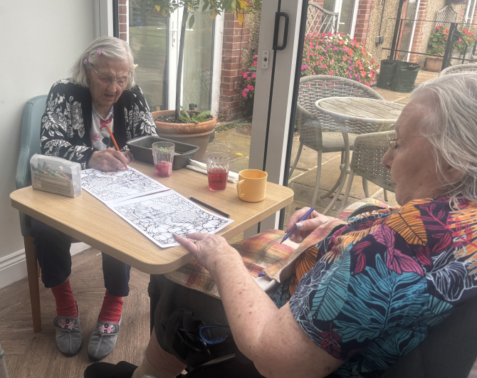 Emily runs a very popular art club where the residents get the opportunity to paint and draw. There are sheets given out for those who just enjoy painting while enjoying the view over Eastfield